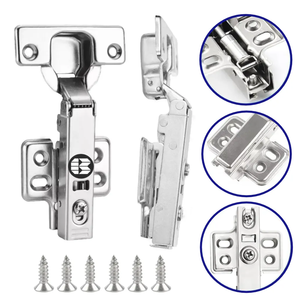 La Bisagra Bidimensional Cierre Suave está hecha de acero de alta calidad, que tiene una buena resistencia a la corrosión, una gran capacidad de carga y es duradera. Son adecuadas para puertas de gabinete de almacenamiento en cocinas, baños, dormitorios, salas de estar, oficinas, armarios, libreros, etc.