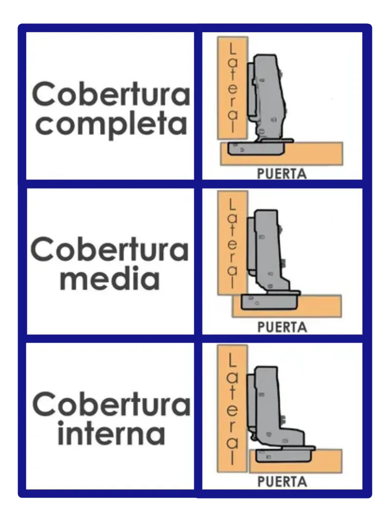 - Bisagra Bidimensional Cierre Suave con cazuela de 35 mm, con la cantidad a escoger entre 1, 5, 10, 15 y 100 pares.