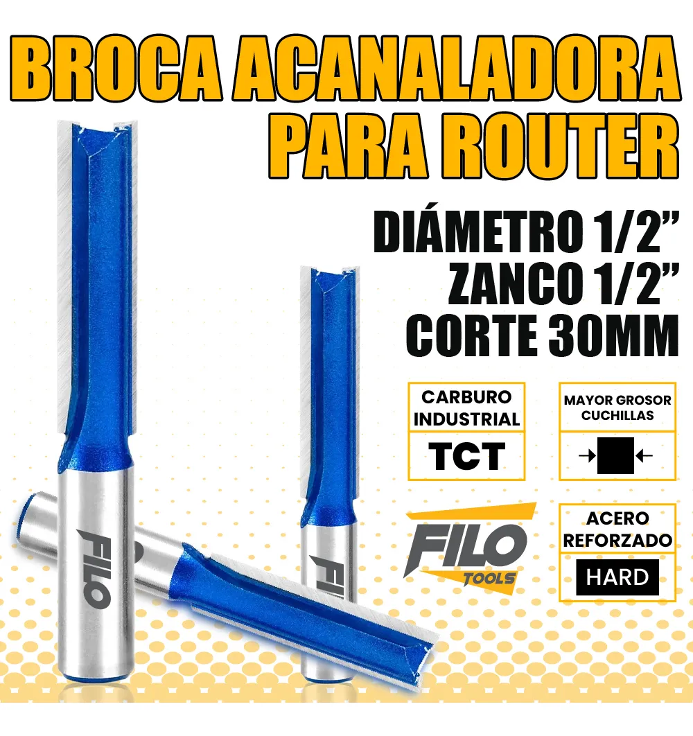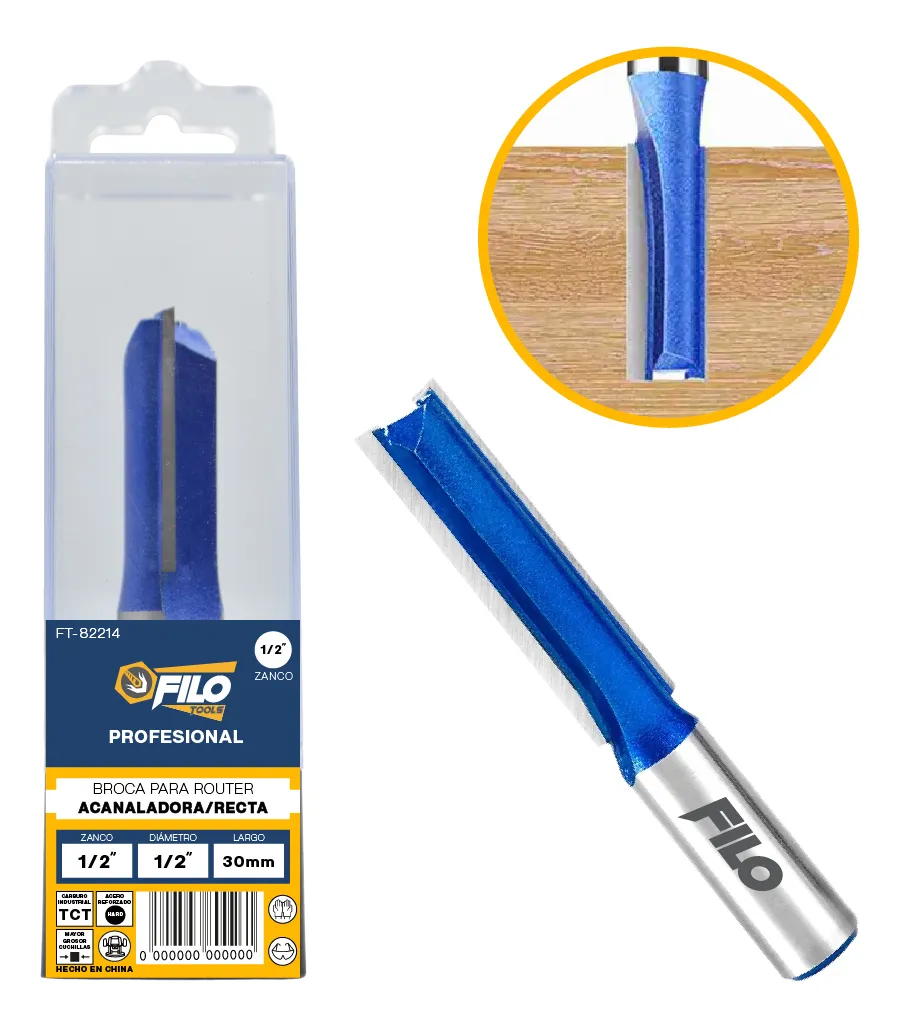 - 1 Broca Acanaladora Router Diámetro 1/2 Zanco 1/2 Corte 30 mm.