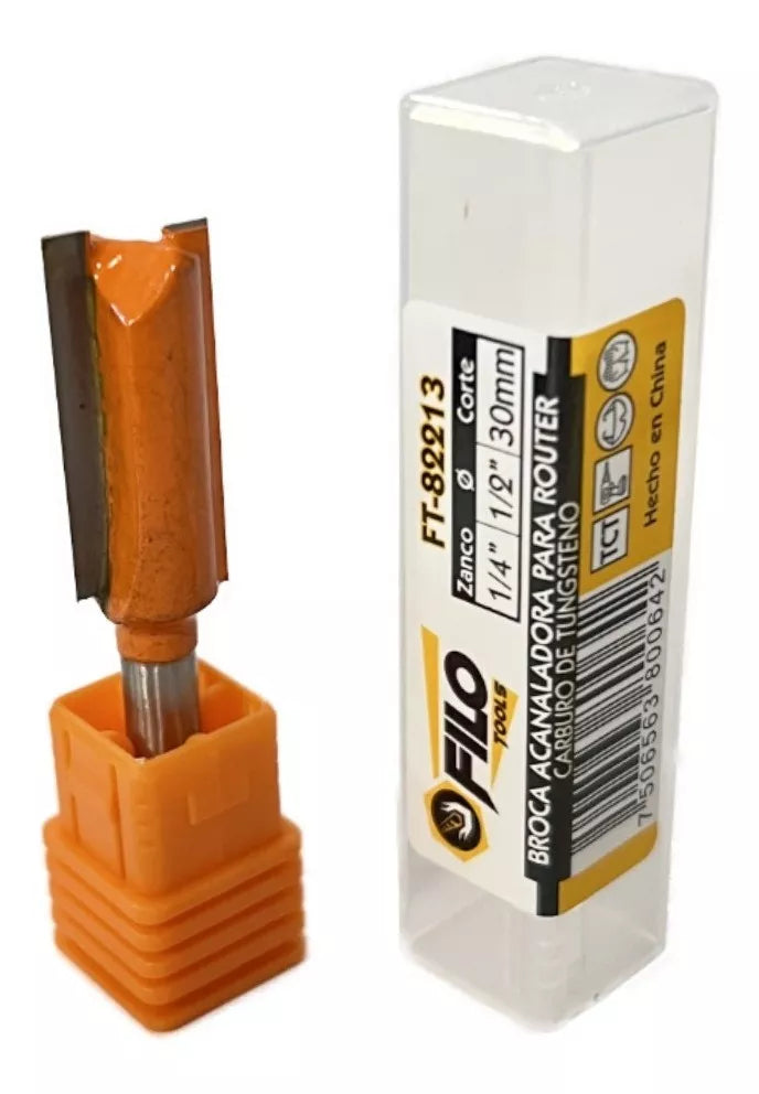- 1 Broca Acanaladora Router Diámetro 1/2" Zanco 1/4" Corte 30 mm.