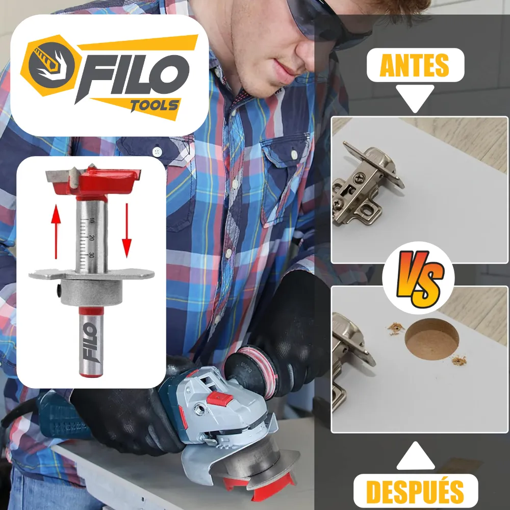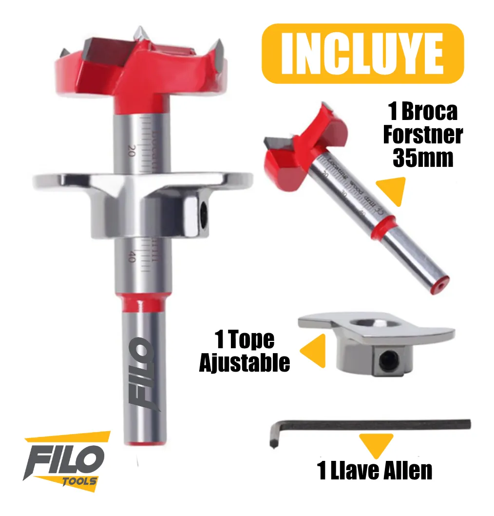 - Broca Tipo Forstner 35 mm con Tope Regulable, con la cantidad a escoger entre 1 o 100 piezas.