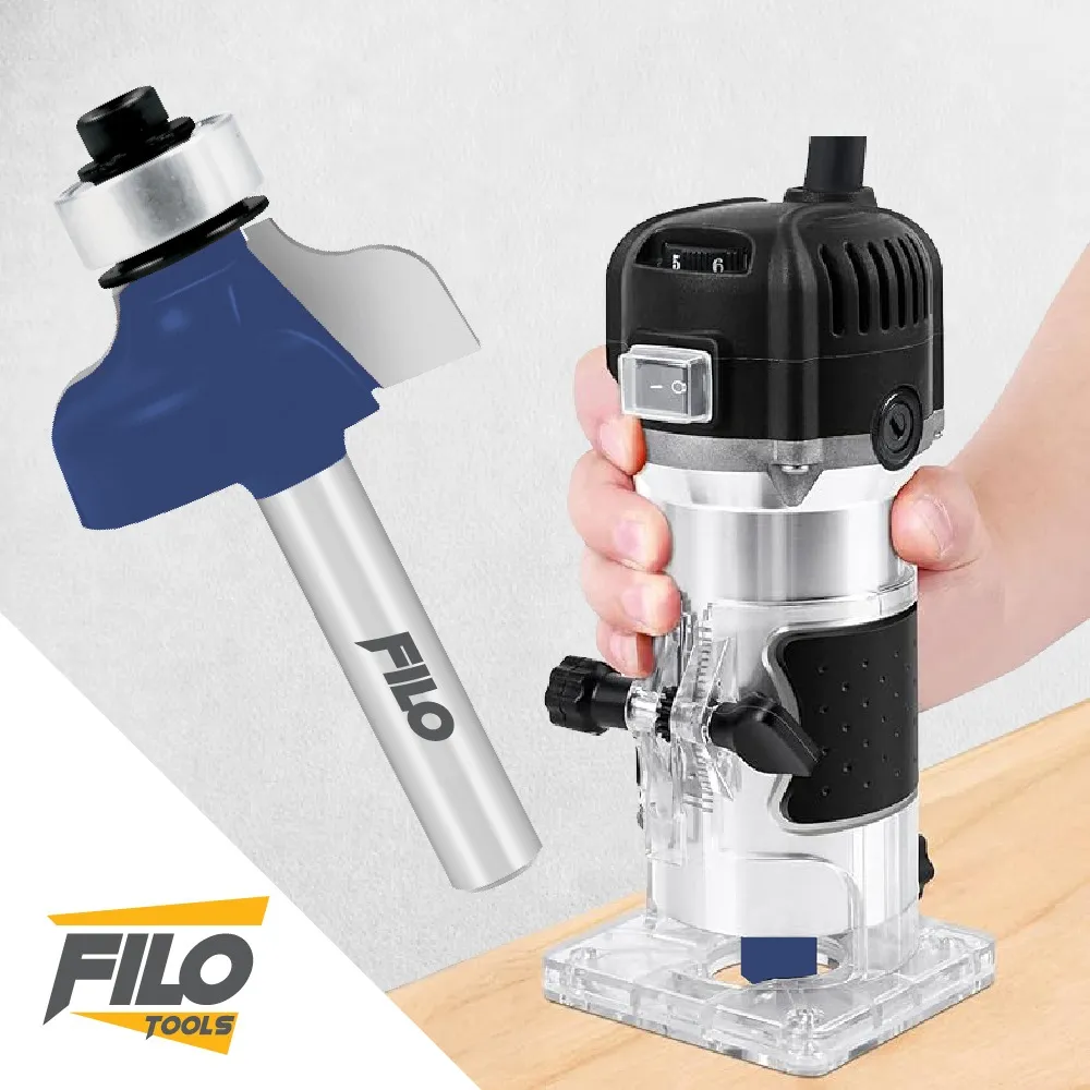 La Broca para Router Pecho Paloma 1-1/8" con Balero para madera Filo Tools, zanco de 1/4 pulgada, balero de 1/2'', diámetro de 1 1/8'' y y radio de 3/16" es ideal para realizar trabajos de carpintería con precisión y eficacia. Su diseño permite realizar redondeos limpios y detallados en diferentes tipos de madera.