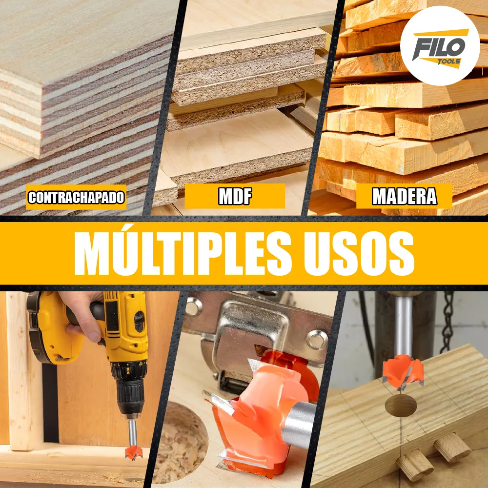 Las Brocas Tipo Forstner de Carburo de Tungsteno son ideales para realizar perforaciones precisas en madera, MDF y otros materiales blandos. Su diseño permite un corte limpio y sin astillas, garantizando resultados profesionales en tus proyectos de carpintería.