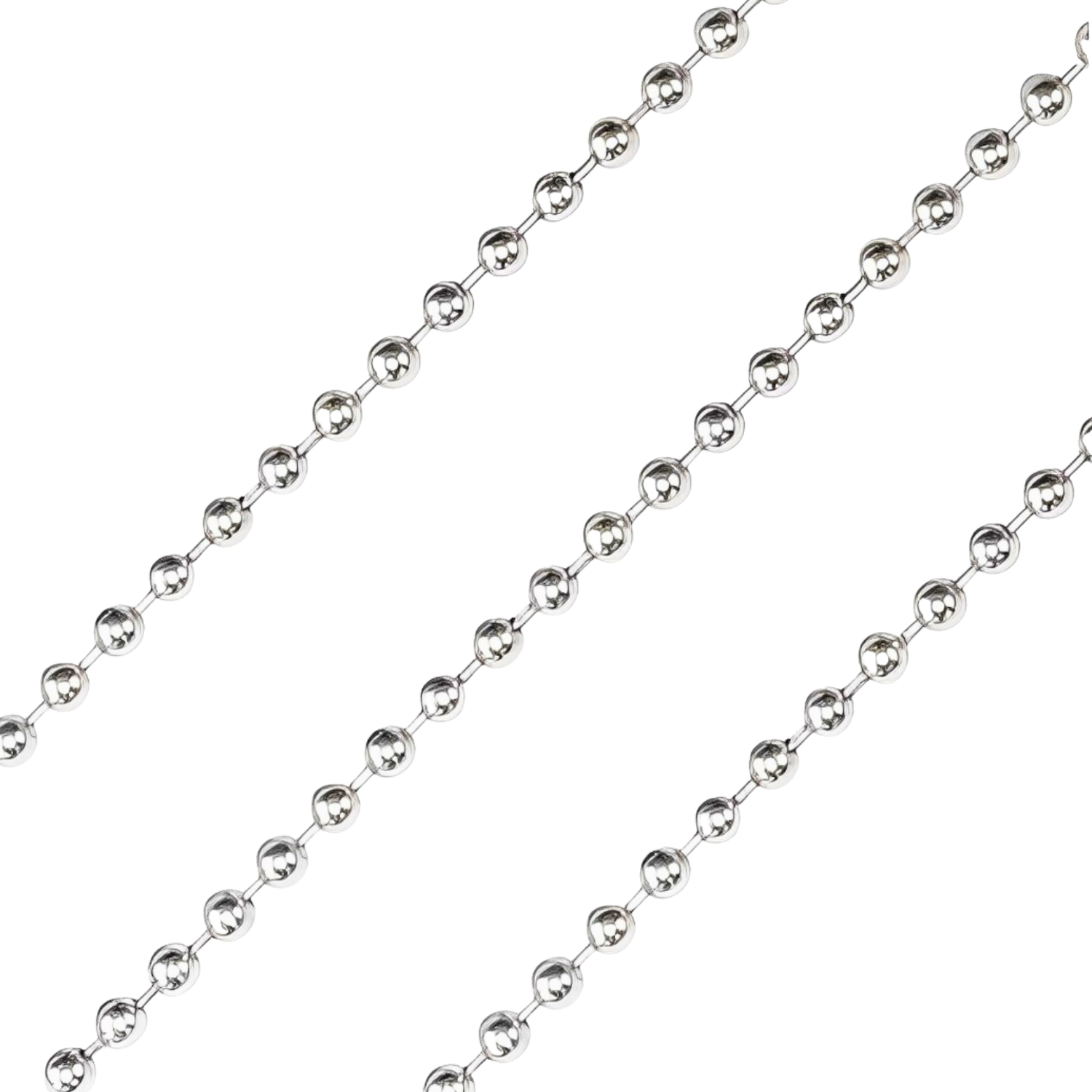 - 100 Metros de Cadena Bolita Acero Níquel Satinado, disponible en tres medidas para escoger.