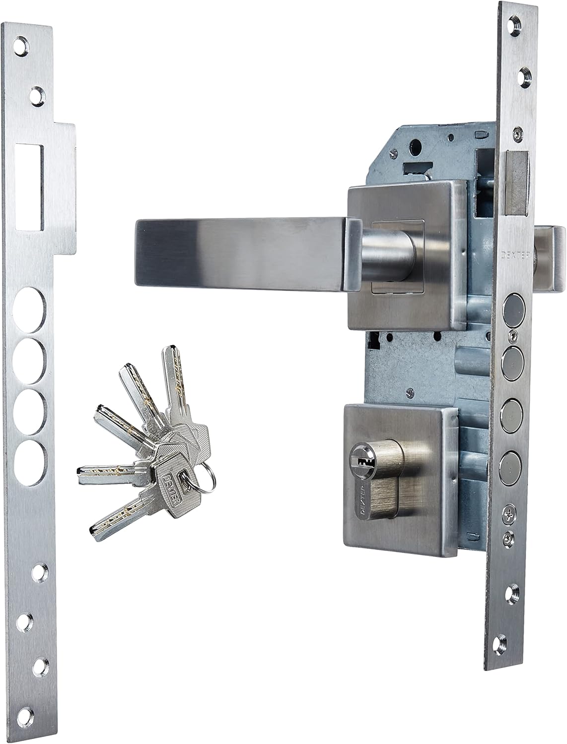 Cerradura de Manija Deluxe "I" de Dexter está diseñada para garantizar la máxima seguridad en la entrada principal de tu hogar o negocio. Con un mecanismo de embutir y 4 bulones de seguridad, proporciona una protección de nivel superior. Su diseño permite apertura en ambos sentidos, adaptándose a distintas configuraciones de puertas.