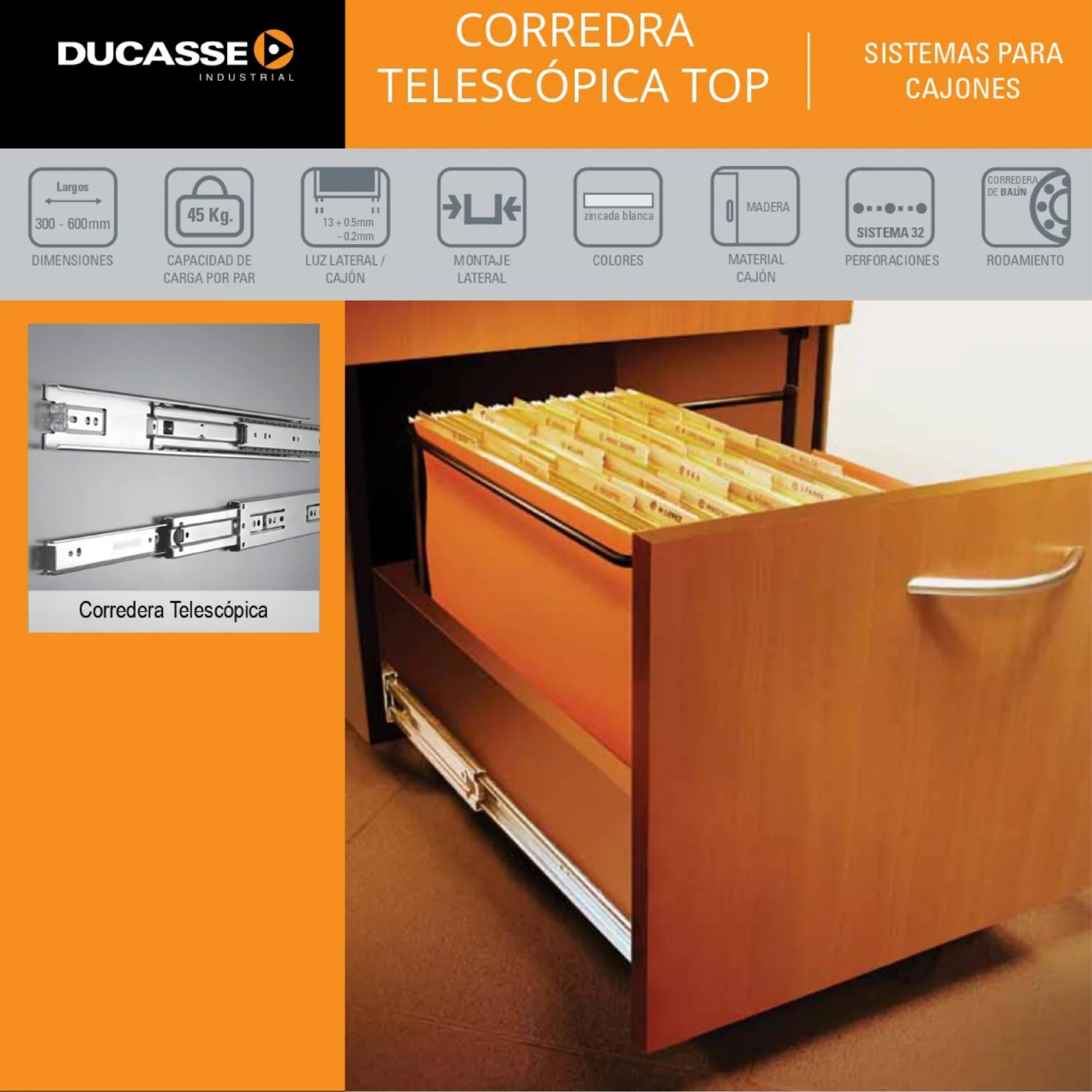 Corredera Telescópica STD 45 mm Extensión Total Ducasse