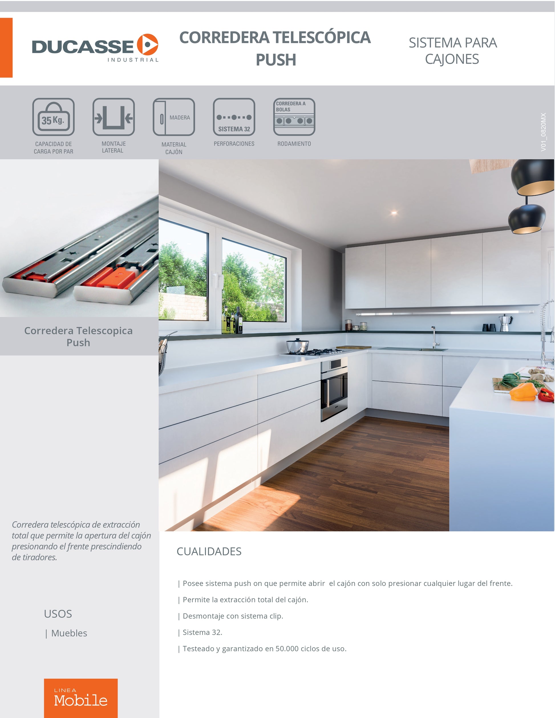 - 1 Par de Corredera de Extensión Push Open Ducasse.