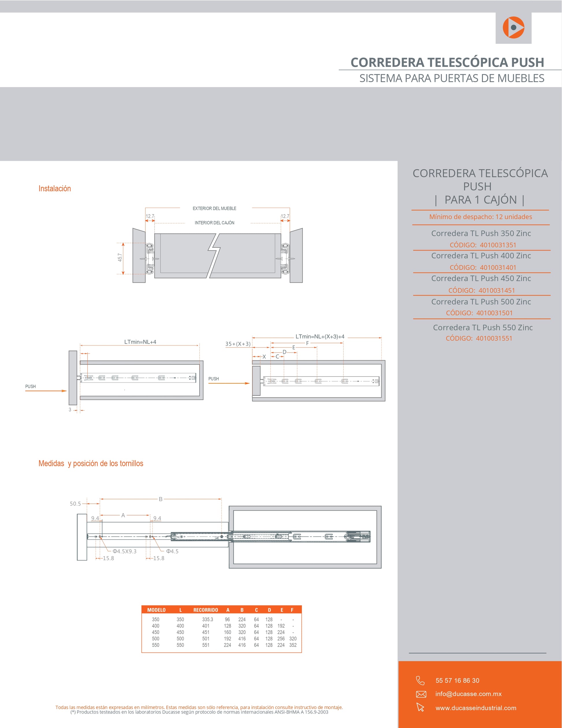 Corredera Telescópica de Extensión Push Open Presiona y Abre Ducasse
