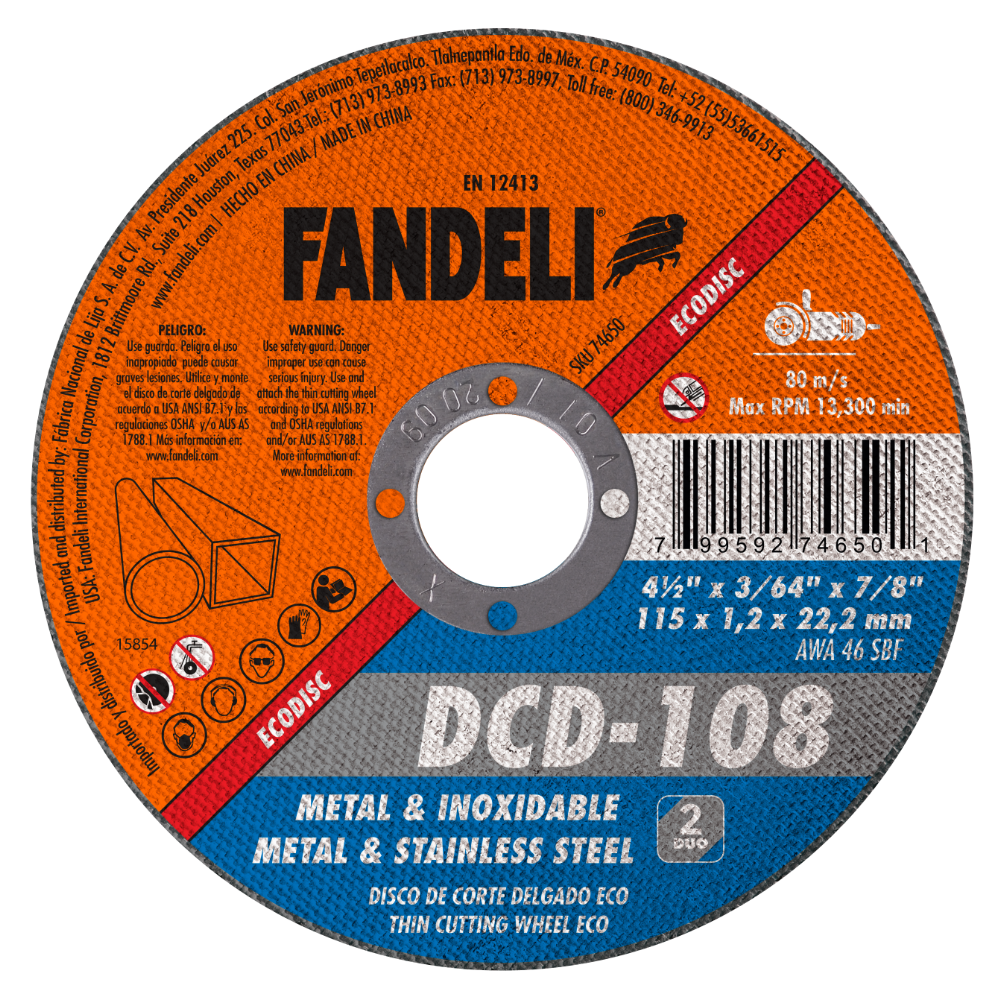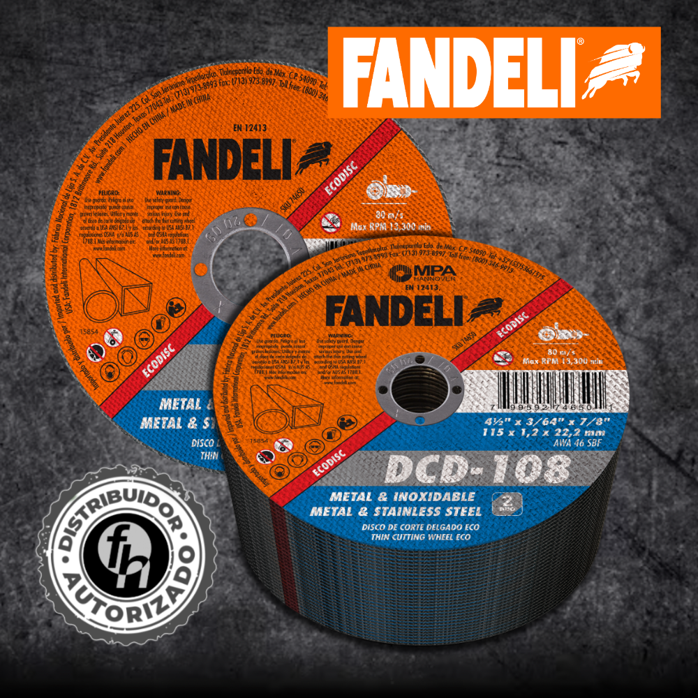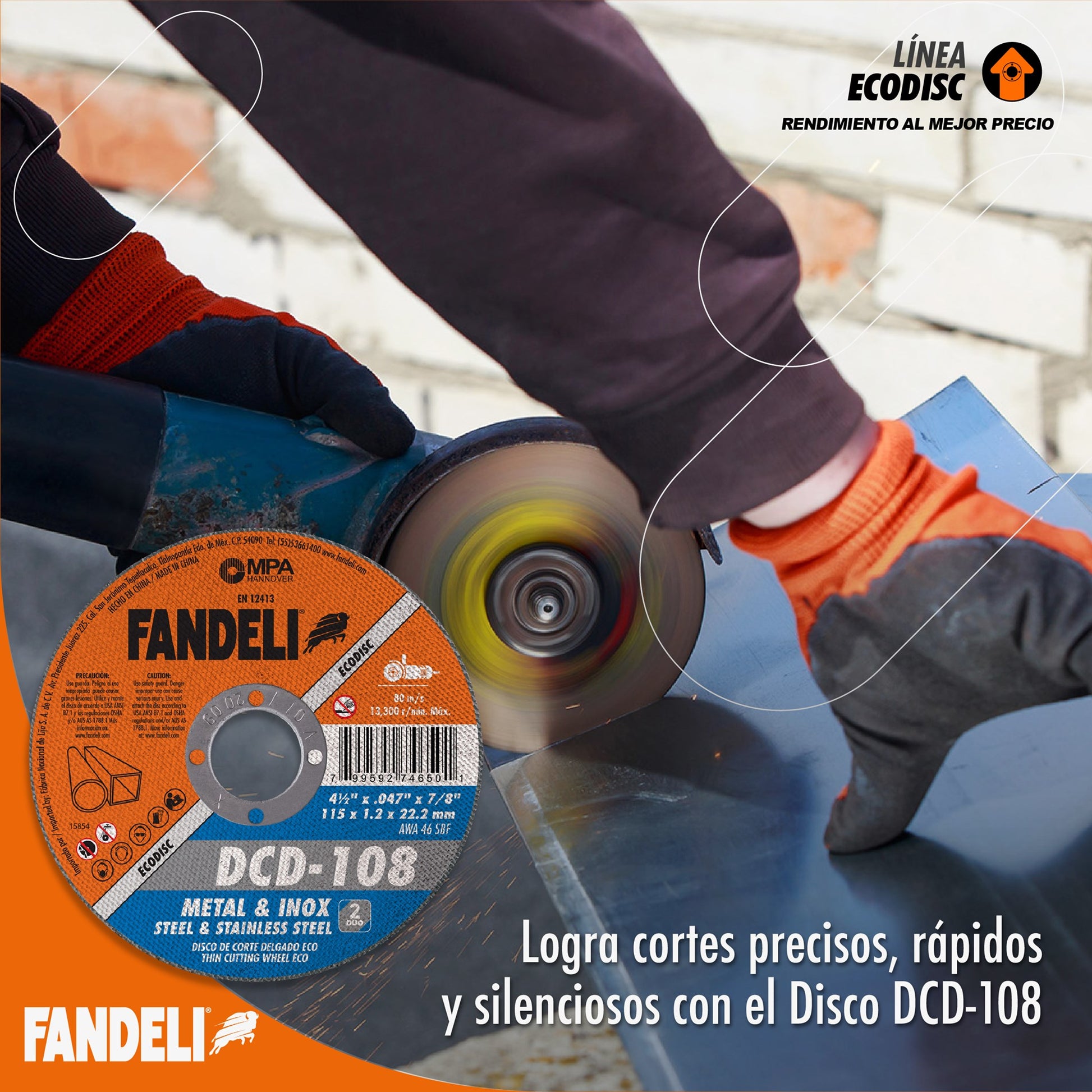 - Disco De Corte Delgado 4 1/2" Eco Fandeli 74650, con la cantidad a elegir entre 1, 10, 50 y 100 piezas.