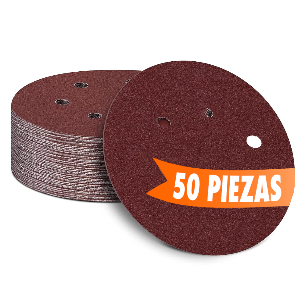 - 50 Piezas Disco Lija Perforado Grano 40 Velcro 5 Orificios X088 04218 de 5 Pulgadas.