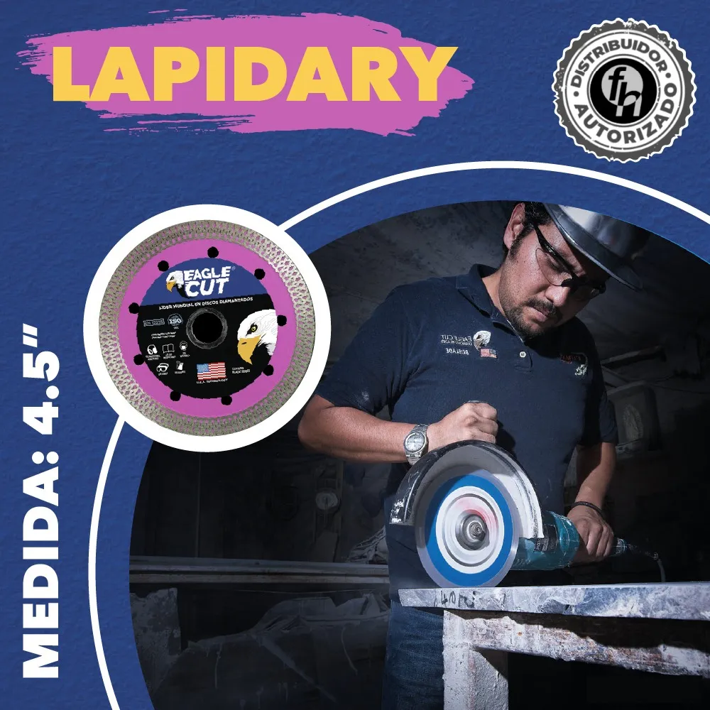 El Disco Diamantado Cortes Extrafinos 4.5'' Eagly Cut es el disco ideal profesional con alma reforzada turbo trenzado para cortes finos en materiales como porcelanato, cuarzo, mosaico, onix, mármol, azulejo, cerámica y materiales vidreos. Con brida reforzada y puede ser usado con agua.