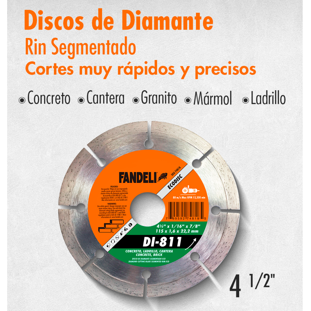 Disco Diamante Rin Segmentado 4-1/2'' Fandeli ECO DI-811