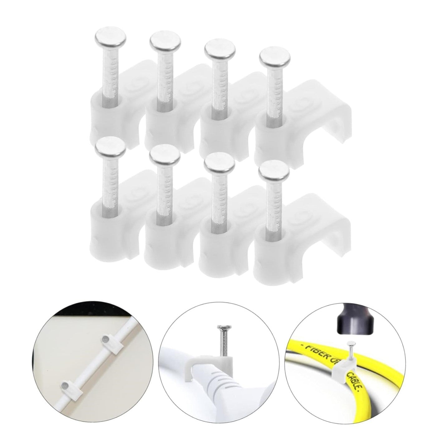 - 100 Piezas Grapas de Plástico con Clavo Para Cable Plano.
