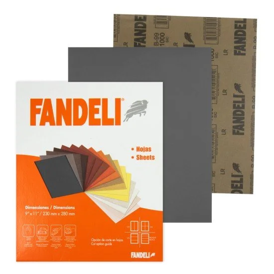 - Lija de Agua Microfina Hoja B-99 Grano 1000 Fandeli, con la cantidad a elegir entre 25 o 50 piezas.