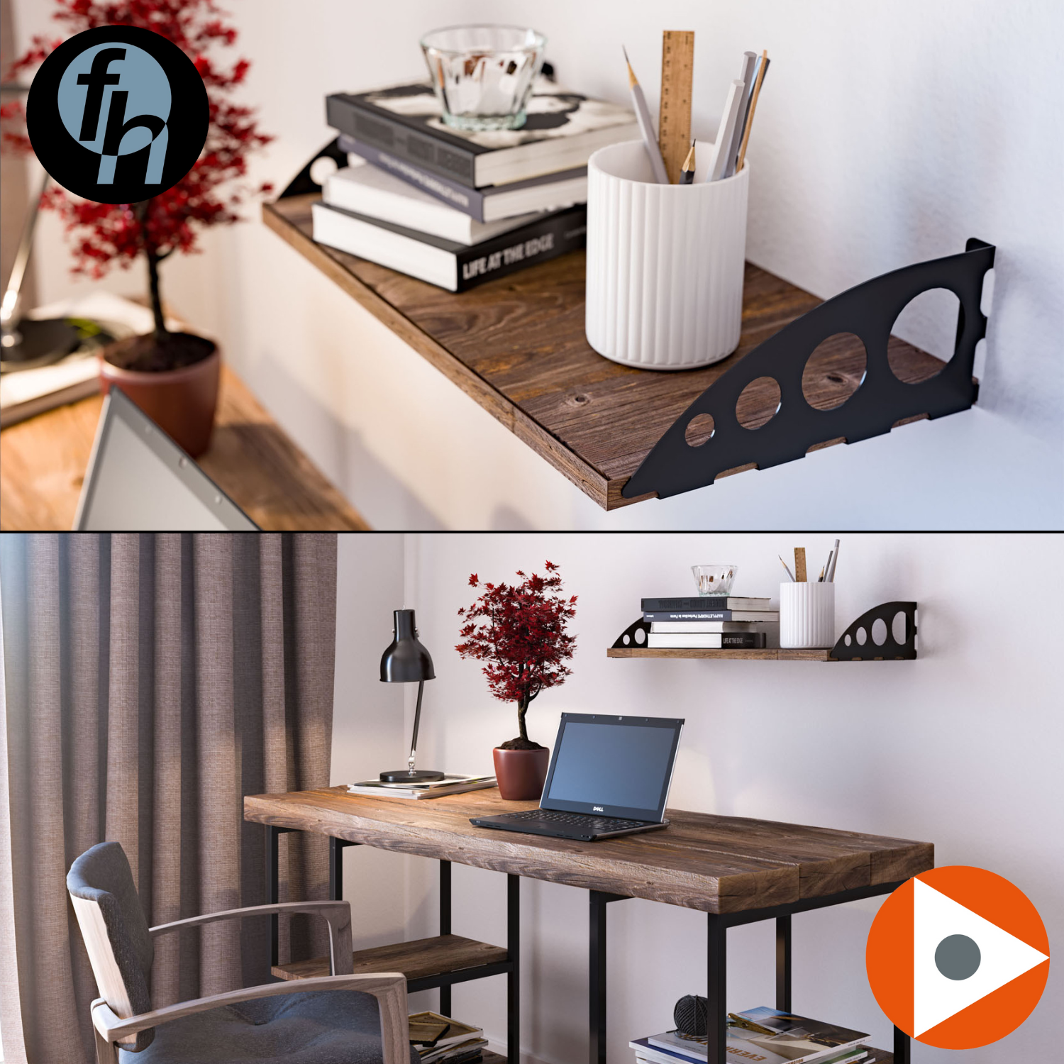 Soporte Matisse Ducasse Decorativo para repisas. Fabricado en acero de 1.2 mm, recubierto en pintura epóxica y con terminación microtexturada que evita rayaduras, brindando mayor durabilidad.