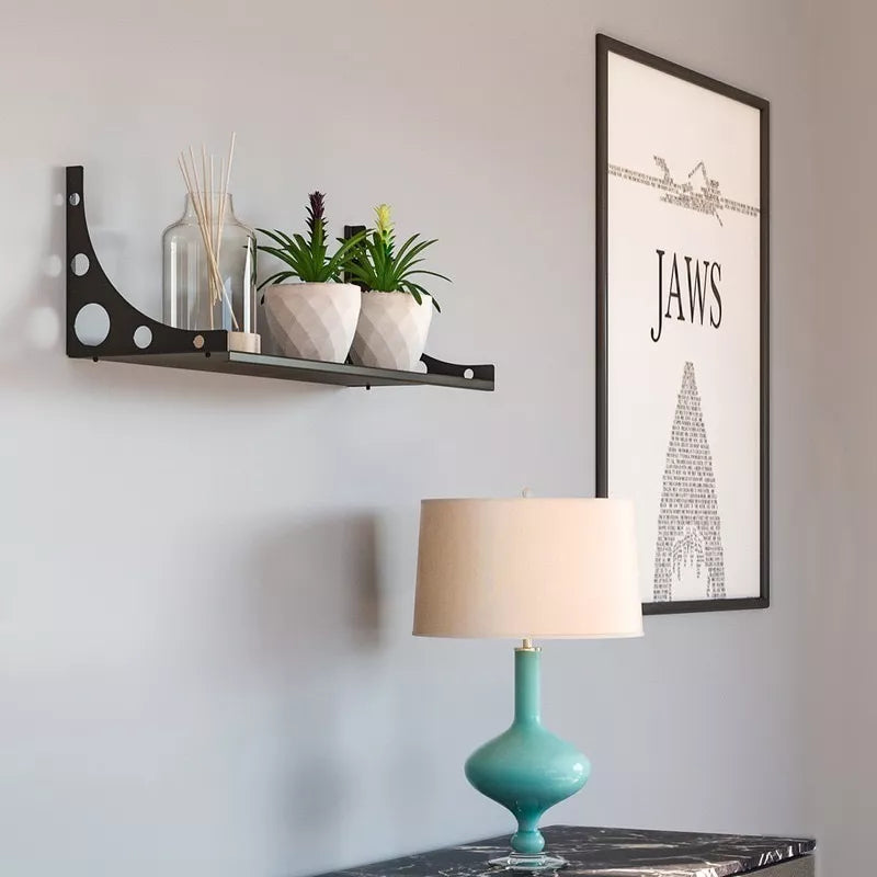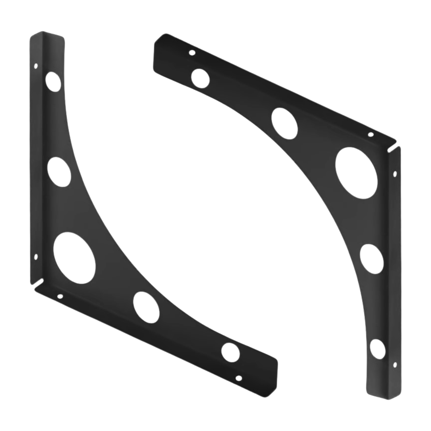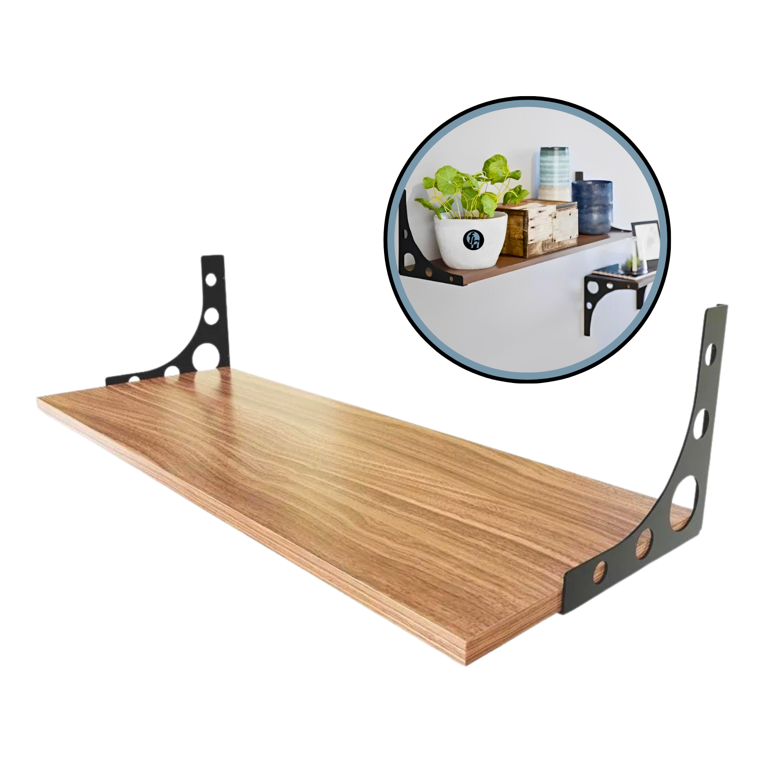 Soporte Mondrian Ducasse Decorativo para repisas. Fabricado en acero de 1.2 mm, recubierto en pintura epóxica y con terminación microtexturada que evita rayaduras, brindando mayor durabilidad. Su forma en ángulo recto permite que pueda ser usado en dos posiciones, sobre o bajo la repisa.