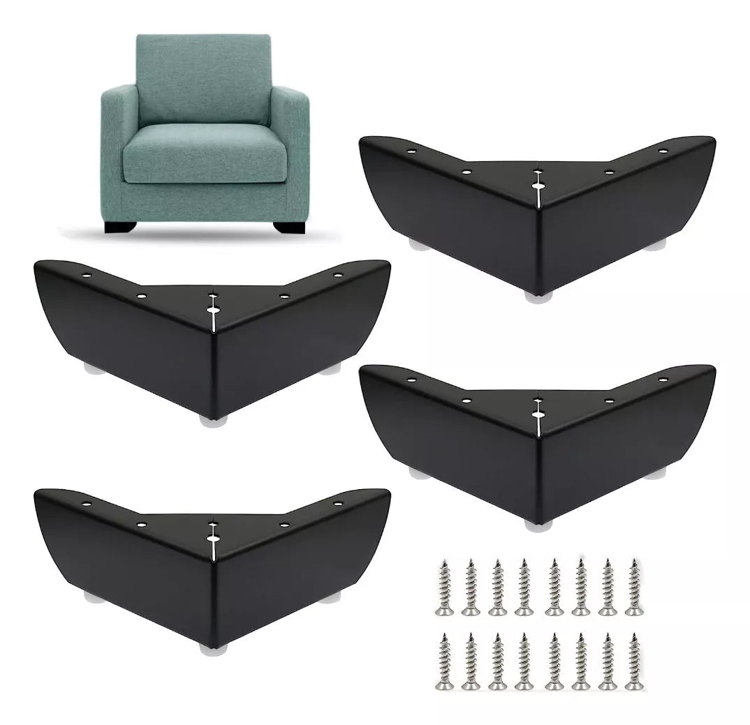 - 4 Piezas Pata para Sofá Esquinera Negro Mate.