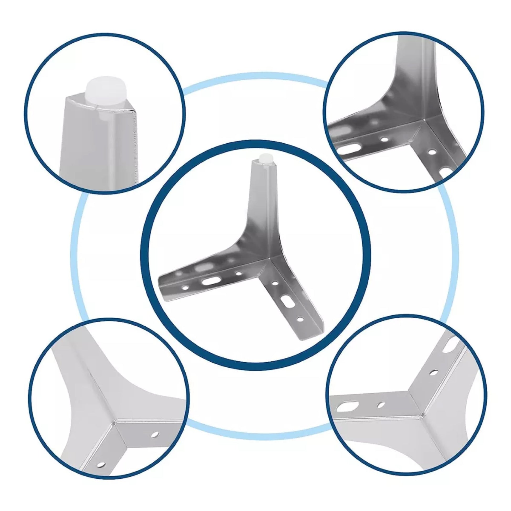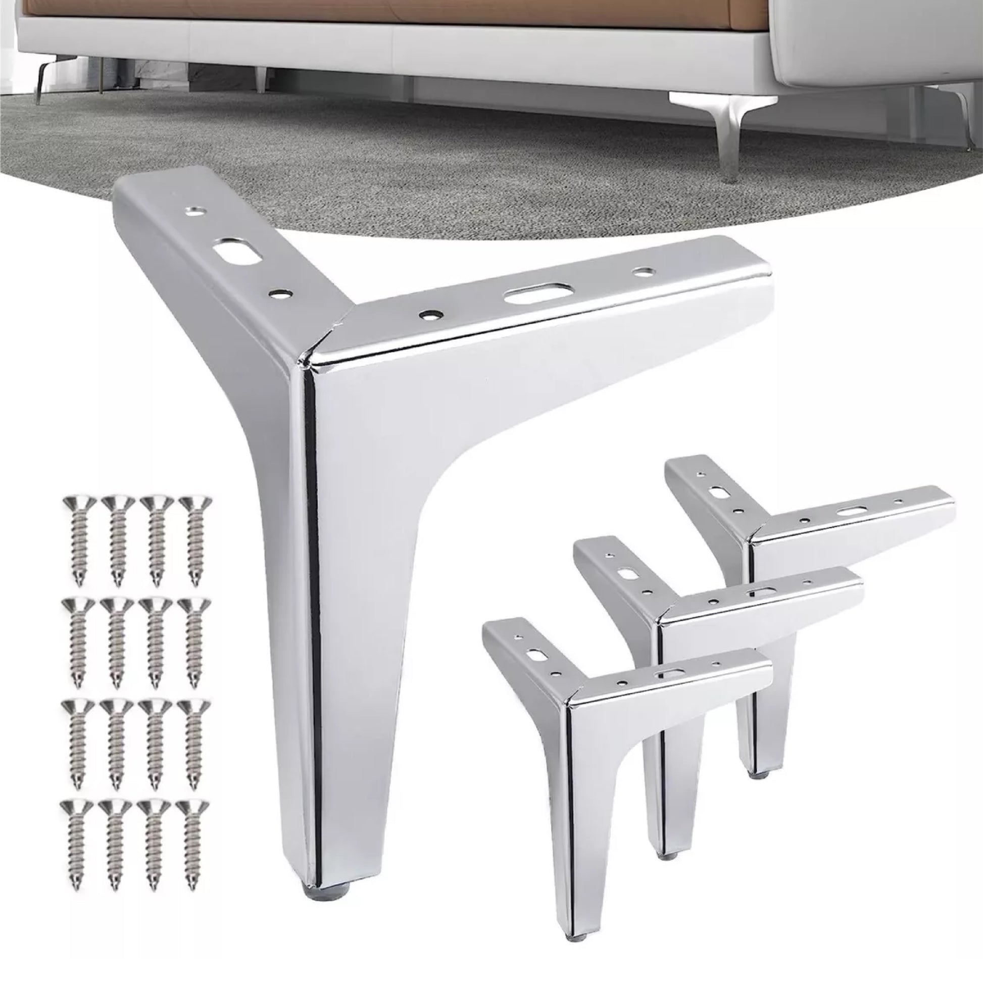 - Pata para Sofá Triangular Slim Cromo, con la cantidad a escoger entre 1 o 4 piezas, disponible en cuatro medidas para elegir.