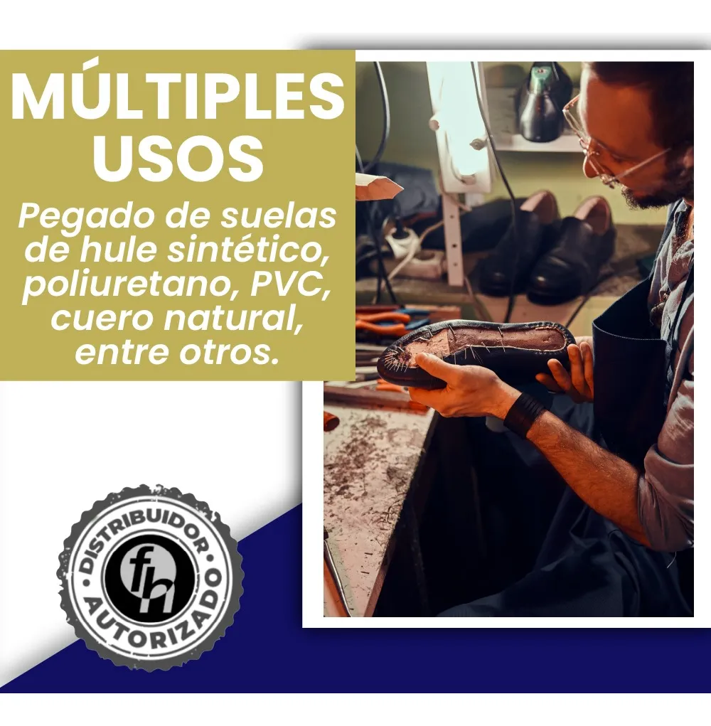 Formulado especialmente para la fabricación de calzado y el pegado de suelas de hule sintético, poliuretano, PVC, cuero natural, entre otros. Su aplicación puede ser manual, con brocha, máquina y llana estriada.