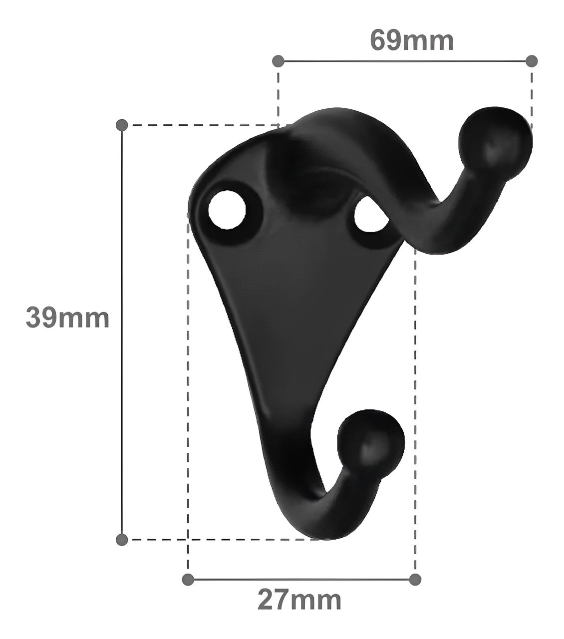 Gancho Perchero Largo y Corto Negro Mate Handy Home