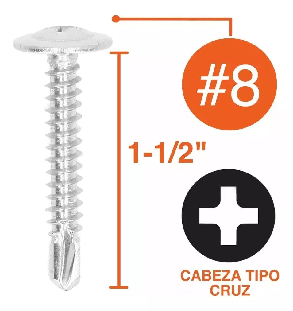 - Pija Punta de Broca K-Lath #8x1 1/2'', con la cantidad a elegir entre 100, 500 o 1000 piezas.