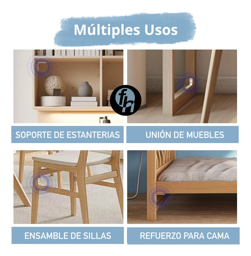 Estos soportes de alta calidad son fáciles de instalar y proporcionan un soporte robusto y fiable, asegurando una fijación sólida en cualquier estructura. Su acabado metálico pulido también aporta una apariencia profesional y estética. Perfectos para mejorar la estabilidad y la durabilidad de tus proyectos de carpintería.