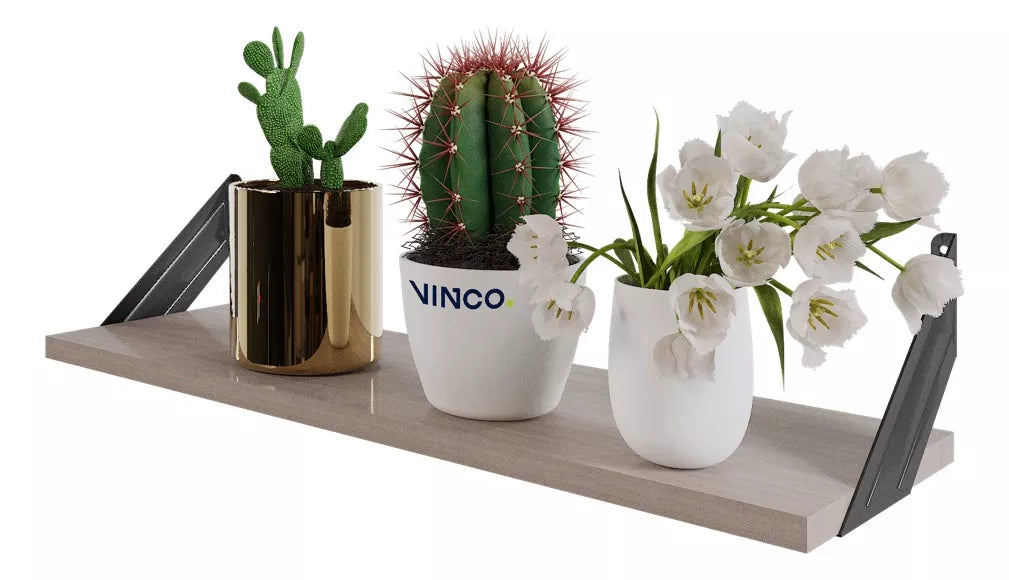 Repisa Estantería Melamina Ceniza 60x20 cm Soporte Negro Minimalista Moderna