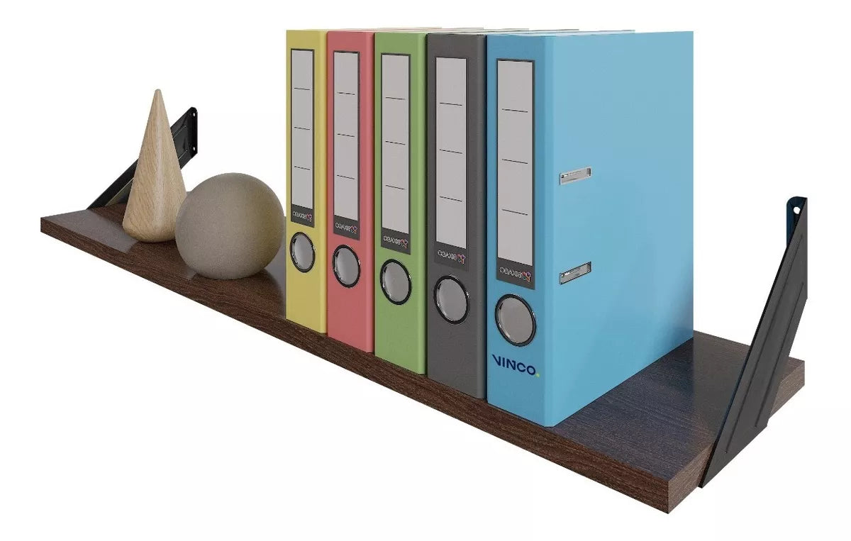 Repisa Melamina Wengue 80x20 cm Con Ménsula Minimalista Moderna