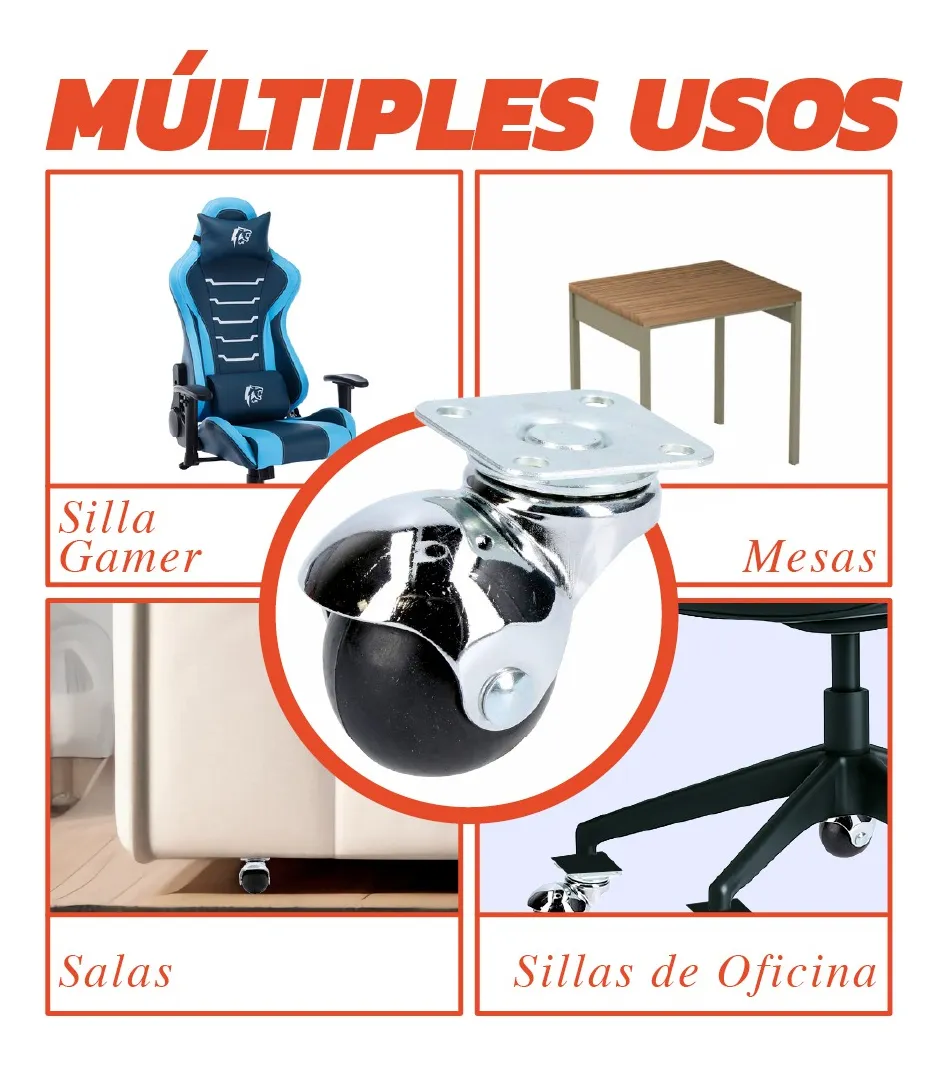 - 4 Piezas de Rodajas de Bola Giratoria 40 mm con placa.