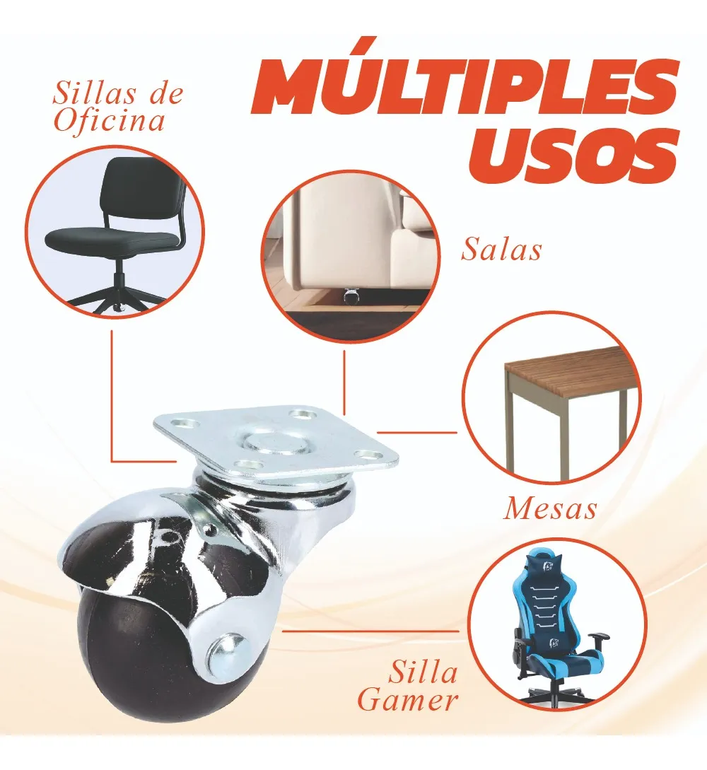 Las Rodajas de Bola Giratoria 50 mm con placa marca Tycon, es la solución perfecta para facilitar el movimiento de muebles, carritos y más. Con su diseño robusto y su capacidad de giro suave, esta rodaja proporciona una maniobrabilidad excepcional en una variedad de aplicaciones. Ideal para sillas de ruedas de oficinas, sillas gamer, mesas, salas