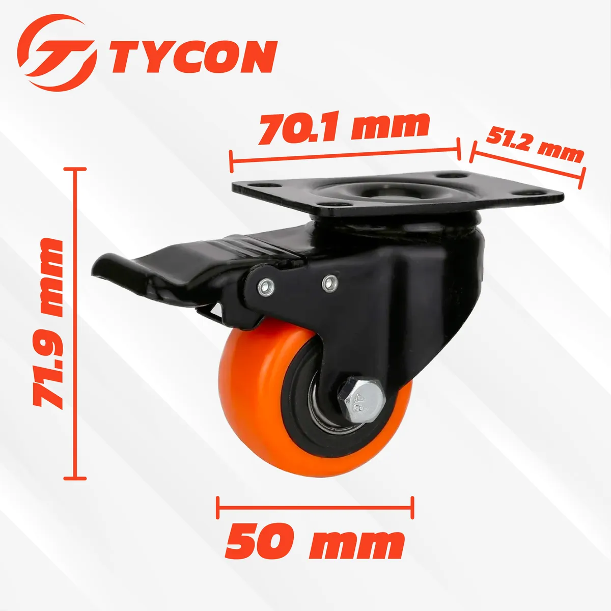 La Rodaja Giratoria Rueda 50 mm Doble Balero con freno Tycon es la solución perfecta para mover muebles, mesas o carritos. Con su placa giratoria y rueda de hule amortigua golpes y vibraciones que ayudan a reducir la fricción entre el suelo y los objetos, disminuyendo las posibilidades de rasguños y choques accidentales.