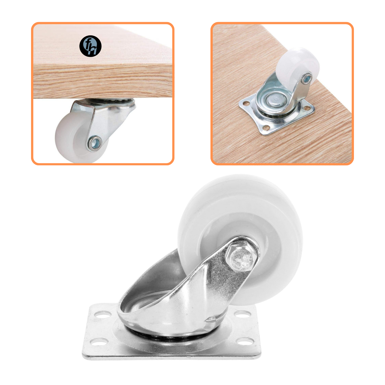 - 4 Piezas Rodaja Plana Giratoria de Plástico Blanco, disponible en tres medidas para elegir.
