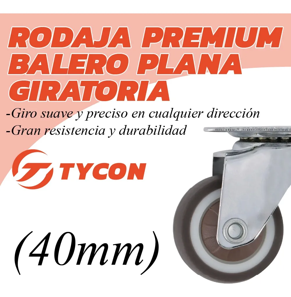 Rodaja Rueda Giratoria Café 40 mm Sin Freno Tycon 8 Piezas