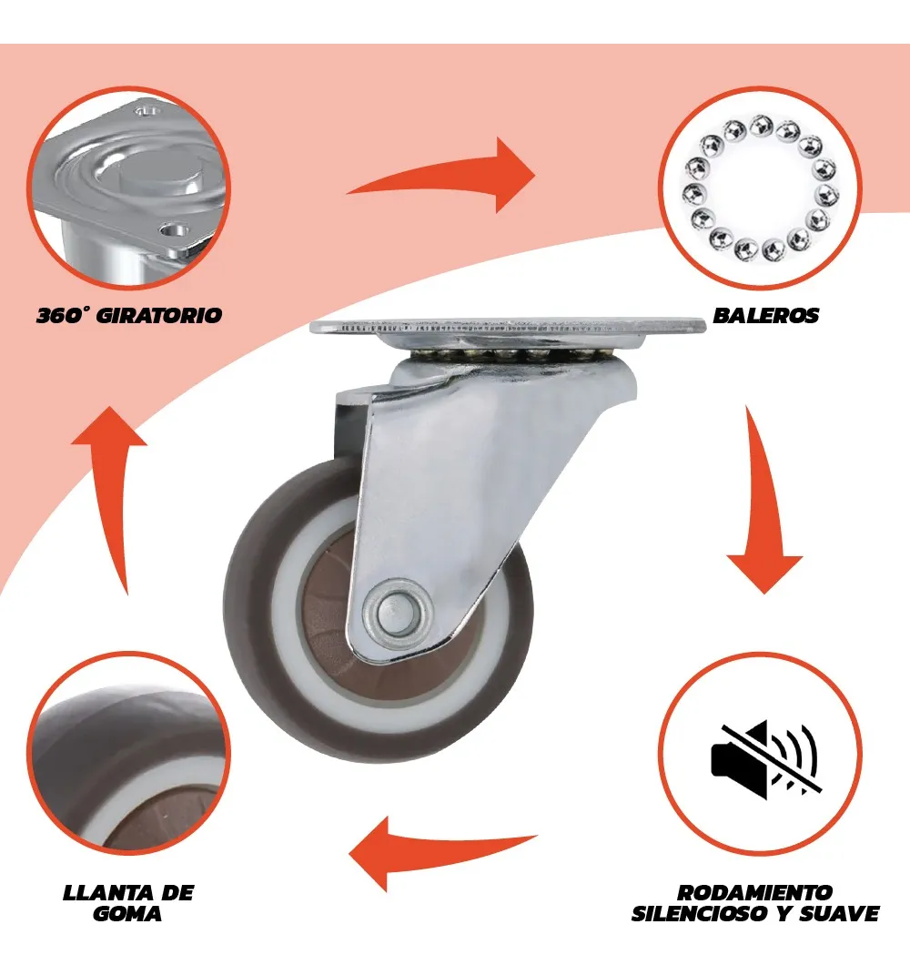 Es ideal para deslizar sobre pisos de madera, alfombras, cerámica o baldosas. Fabricada con poliuretano en aleación de alta resistencia, asegurando la suavidad y durabilidad del movimiento de las ruedas.