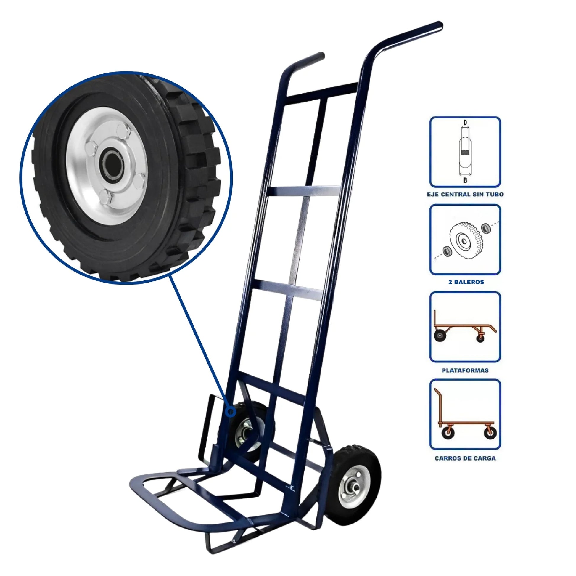 - 1 Pieza Rueda para Diablo de Hule con 2 Baleros, disponible en cuatro medidas para elegir.