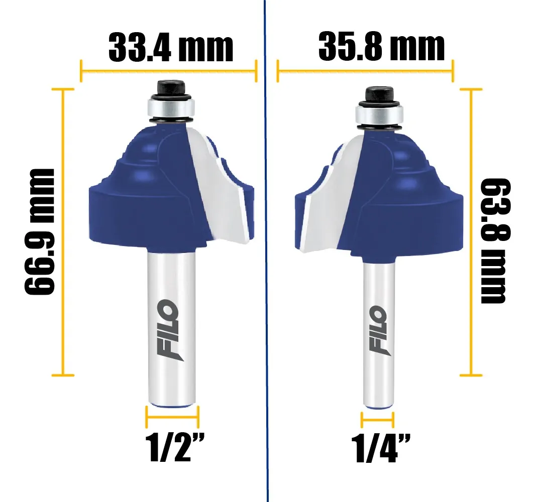 El Set de 2 Piezas de Broca para Router Romana Doble con Balero Filo Tools es ideal para realizar trabajos de carpintería con precisión y eficacia. Su diseño permite realizar redondeos limpios y detallados en diferentes tipos de madera.