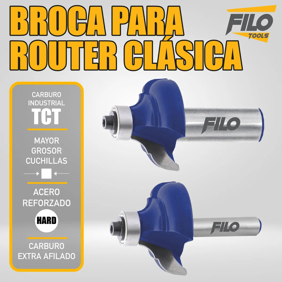 El Set de 2 Piezas de Broca para Router Corte Clásico con Balero Filo Tools es ideal para realizar trabajos de carpintería con precisión y eficacia. Su diseño permite realizar redondeos limpios y detallados en diferentes tipos de madera.