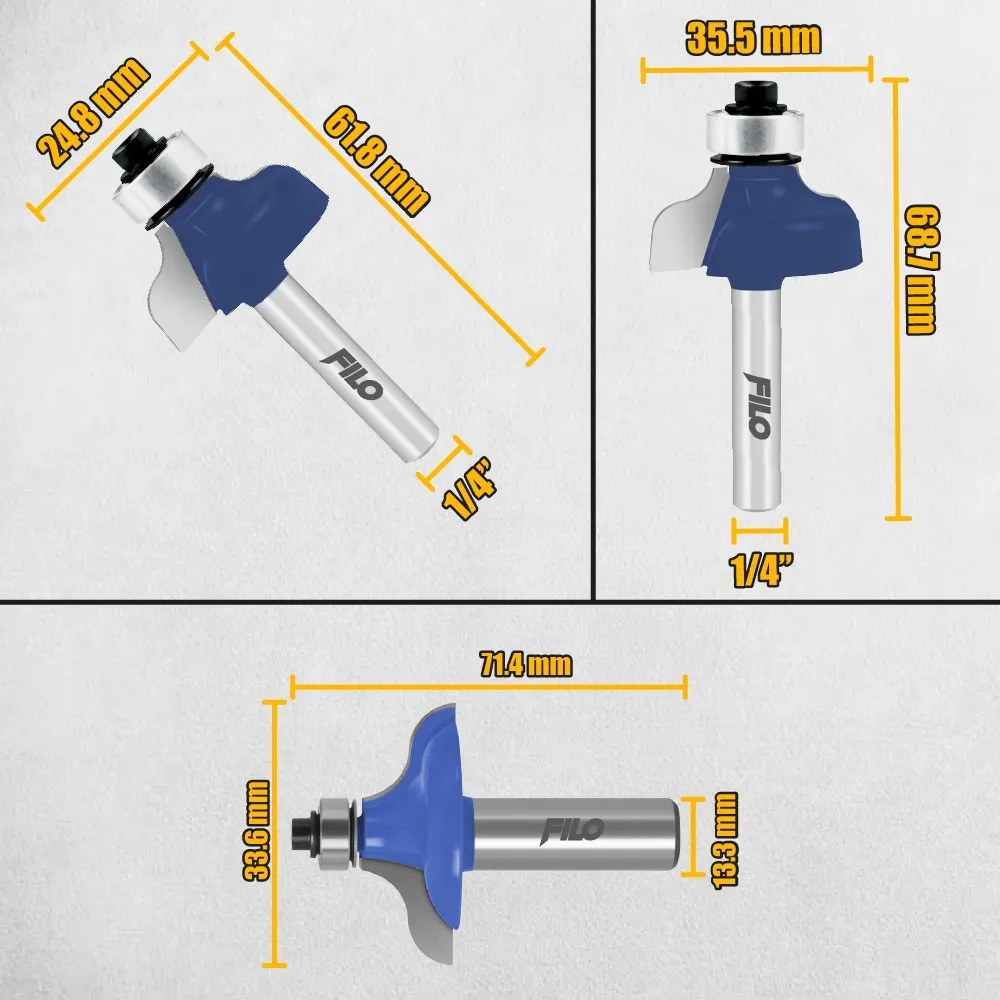 El Set de 3 Piezas de Broca para Router Pecho Paloma Filo Tools es ideal para realizar trabajos de carpintería con precisión y eficacia. Su diseño permite realizar redondeos limpios y detallados en diferentes tipos de madera.