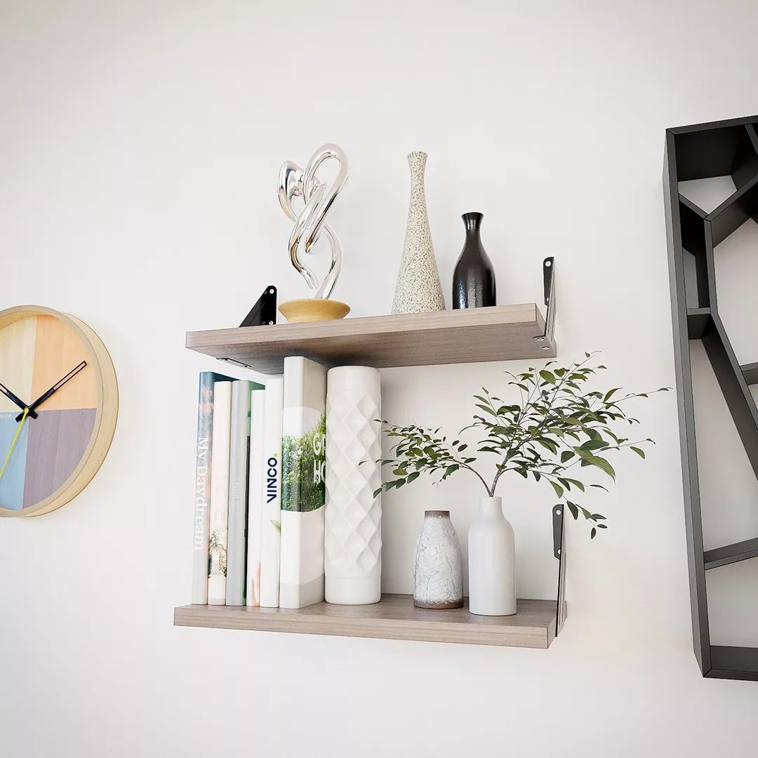 Set 3 Repisas Melamina 40x20 cm Ceniza Soporte Lateral