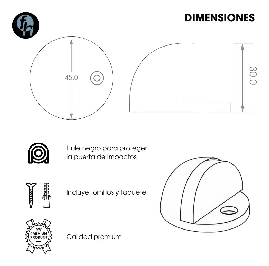 Tope para Puerta Tipo Domo Magnético, es la solución perfecta para proteger tus puertas y paredes de golpes, y elimina los ruidos indeseados, con un diseño elegante y discreto que se integra fácilmente en cualquier ambiente moderno.