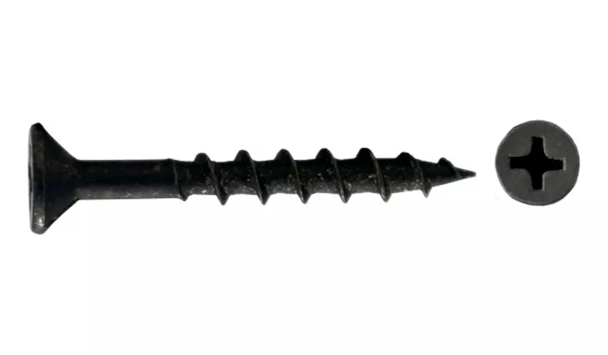 Tornillo Pija Aglomerado de Cabeza Plana Tipo Phillips con Nibs, cuenta con recubrimiento de fosfato negro que los hace más resistente a la corrosión, por lo que tienen una alta durabilidad. Perfectos para construcciones, placas de yeso, paredes de yeso, paneles de madera, escaleras y otras aplicaciones de interior y exterior. Gran variedad de medidas disponibles para todo tipo de trabajo de carpintería.