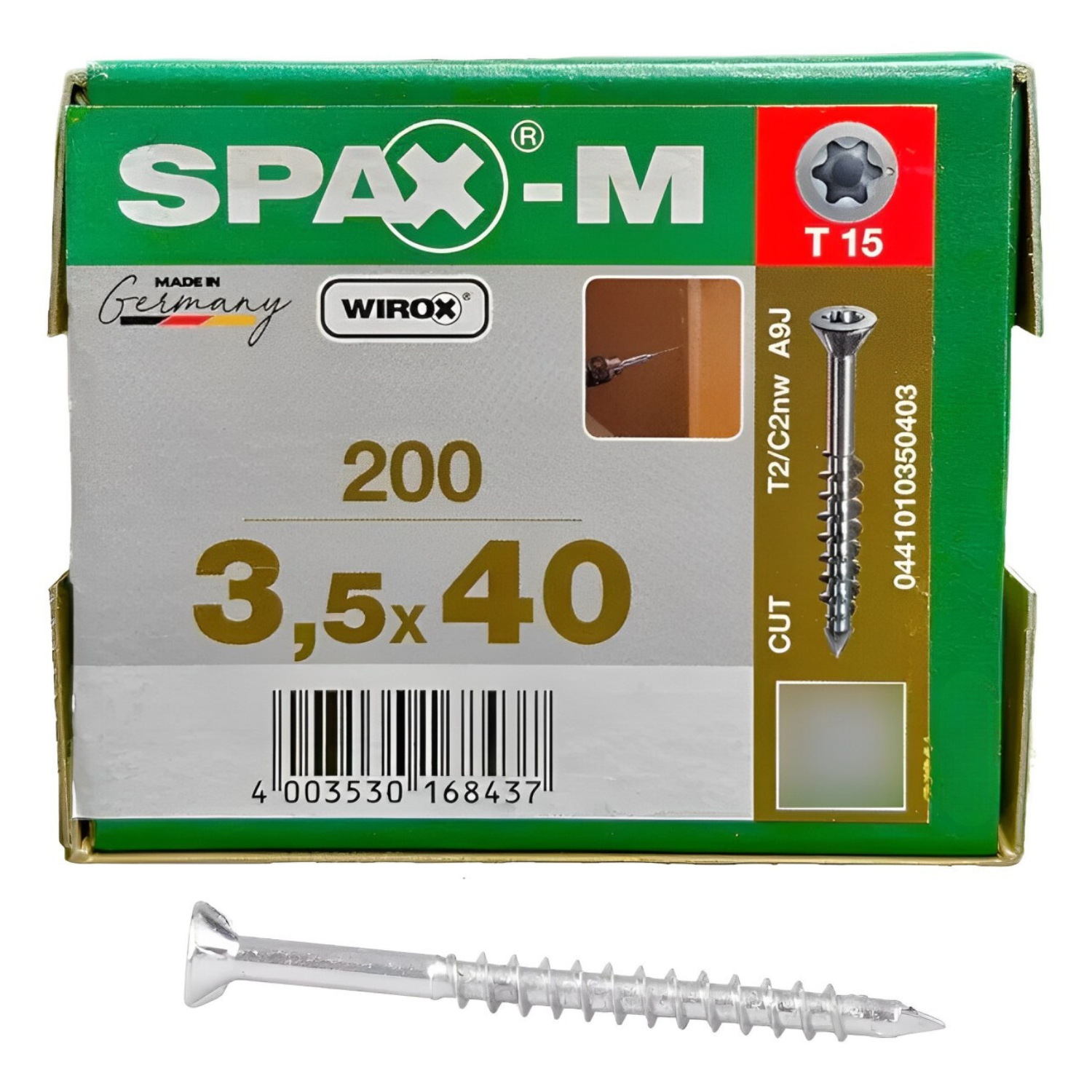 El Spax M para MDF 3.5x40 mm T15 es un tornillo de alta calidad diseñado específicamente para trabajos en MDF.